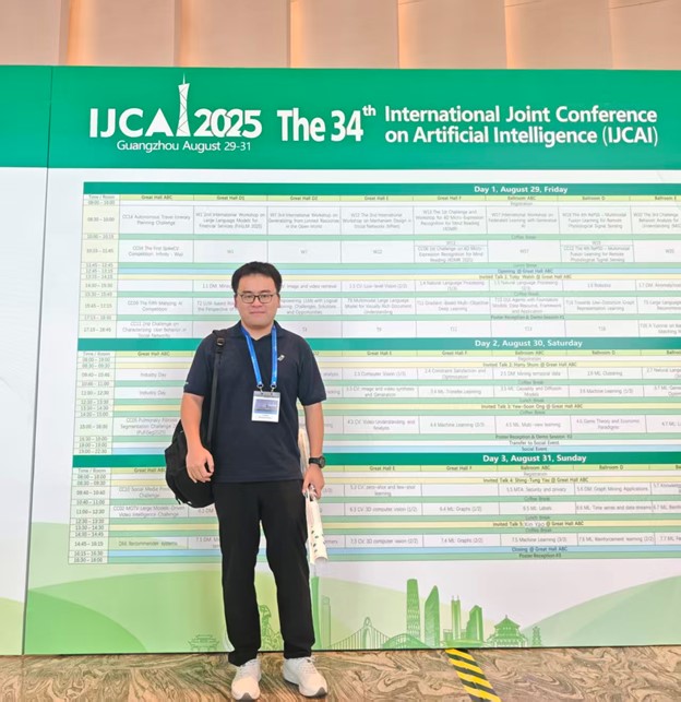 2025年8月29日至8月31日,第34届国际人工智能联合会议(International Joint Conference on Artificial Intelligence,IJCAI 2025)在中国广州召开。 IJCAI每年召开一次,是人工智能领域的顶级会议之一。会议期间,来自王选所数据管理实验室的博士研究生李彦增就他的研究成果进行了展示,并与国际同行进行了深入交流。